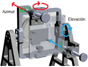 El ATP diseñado (Figura 10), es un subsistema capaz de seguir pequeñas desviaciones del haz proveniente del faro óptico. El componente que realiza el movimiento es un dispositivo tipo gimbal con dos grados de libertad angulares: altitud y azimuth. El movimiento resultante es una alineación que cubre un ángulo sólido de unos cuantos grados (del orden de una decena de grados) cuyo campo de visión puede barrer áreas enormes debido a la gran distancia del enlace.