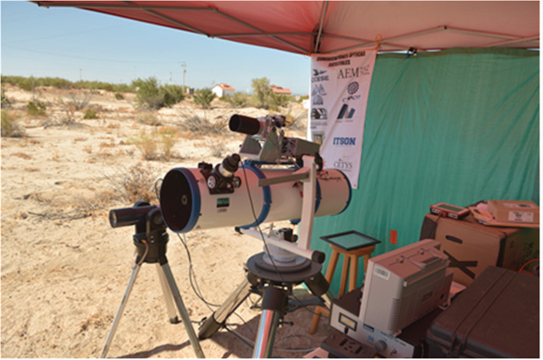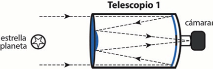 Lo siguiente es colocar los dos telescopios frente a frente mediante la correcta alineación de uno respecto al otro para que una vez que ambos telescopios compartan el mismo eje óptico, en el telescopio 1 se vea la imagen de la fuente del telescopio 2.