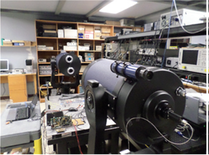 Para una mejor caracterización experimental del subsistema ATP desarrollado se requeriría el uso de un faro óptico situado a la distancia de un enlace óptico de espacio libre satelital (los satélites de órbita baja se encuentran a una distancia de 640 km a 3000 km de la superficie terrestre) lo cual no es factible antes de lanzar el satélite, pero mediante la técnica de la estrella artificial es posible simular un faro con dichas características. Para esto, se lleva a cabo un proceso de calibración empleando dos telescopios marca MEADE LX200-ACF, produciendo un haz colimado de 14’’ de diámetro enfocado a infinito, así puede observarse una estrella en laboratorio de la misma manera que se observaría en el cielo.