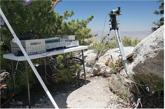 Dado que el objetivo final de los subsistemas reportados en este trabajo es su empleo en enlaces de comunicaciones ópticas satelitales en órbita terrestre baja, es muy conveniente (y necesaria) su caracterización en enlaces ópticos atmosféricos de larga distancia. En particular, aquí reportamos los resultados de un enlace óptico atmosférico de 53.8 km de distancia realizado en el mes de julio de 2019 entre el Observatorio Astronómico Nacional ubicado en San Pedro Mártir y un punto ubicado en San Felipe, B.C., México (Figuras 26 y 27). Es muy importante mencionar que este enlace pudo realizarse de manera exitosa gracias a que la caracterización y optimización de los subsistemas en laboratorio fue adecuada y cumplió con los requerimientos de un enlace de larga distancia.