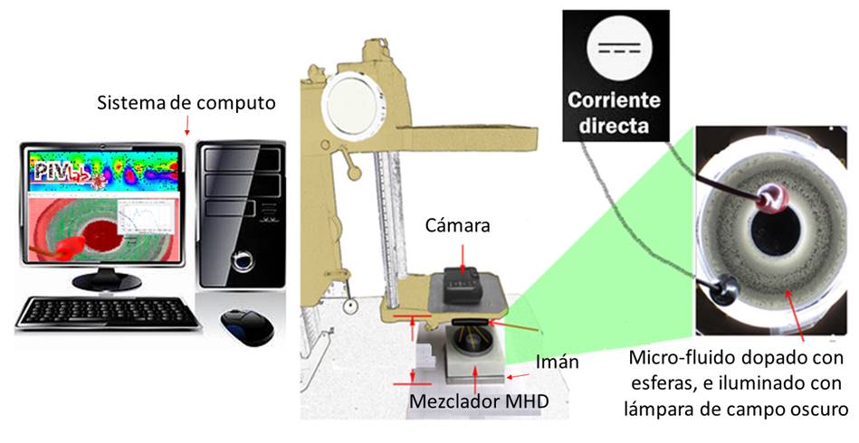 La medición del comportamiento del micro-fluido en un mezclador MHD es una fuente de información indispensable para analizar la forma del diseño, las dimensiones del canal y la caracterización del funcionamiento de dicho mezclador MHD. Además, se requiere experimentar con los efectos de la variación de intensidad de campos magnético y eléctrico inducidos en el micro-fluido, así como con la conductividad del micro-fluido.