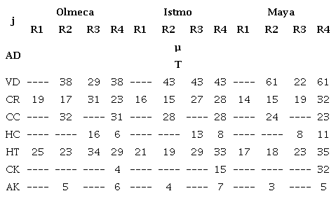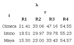 i = type of analyzed crude (Olmeca, Istmo, Maya)