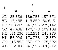 e = minimum (x), maximum (y), average (z)