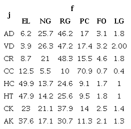 The data base required that feeds Equation 1 is given in Table 1 and 2.