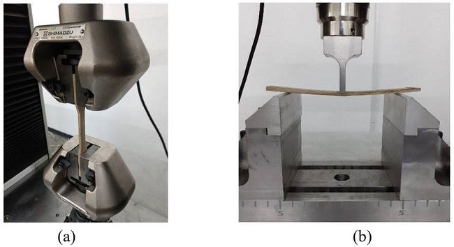 Para cada una de las pruebas se ensayaron 10 probetas de los especímenes de bambú Guadua y Quiote, en una configuración plana basadas en la norma ASTM E8M-11 (Tracción) y DIN 52-186 (Flexión), ver Figuras 4 y 5.