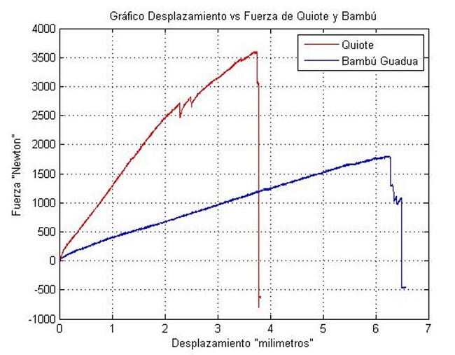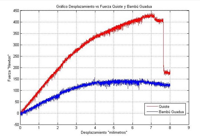 Actualmente, a diferencia del bambú Guadua, no hay reportes técnicos sobre pruebas mecánicas de flexión para el pedúnculo Quiote, el cual presenta una morfología similar. Por lo tanto, en este trabajo, mediante el uso de probetas normalizadas se establece la metodología experimental para realizar las pruebas mecánicas normalizadas de resistencia a la tracción y flexión para estos dos materiales. Resulta muy interesante el hallazgo de que el Quiote de Maguey Manso presenta una resistencia a la flexión prácticamente al doble de la del bambú Guadua, así como su módulo de flexión. En lo que respecta a la tracción, el esfuerzo máximo del bambú es menor que el del Quiote y por lo tanto, presenta una mayor deformación máxima.