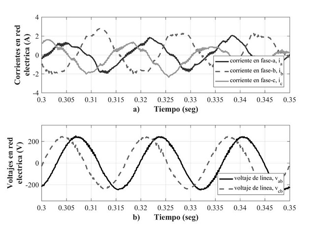 b) La diferencia de voltajes en terminales de las inductancias de acoplamiento del filtro LCL en cada una de las fases, en donde se omite el capacitor para reducir el orden del sistema.