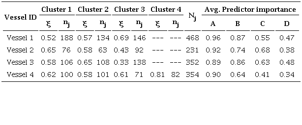 A cluster analysis was performed as described above. This provides analytical support in having clusters internally homogeneous and heterogeneous among them. The main reason for group containers with similar loading characteristics into clusters is to distribute them close together within the yard. Table 6 shows the clustering results for each vessel. The silhouette value (ξ) helps to assess the goodness of a classification. It measures the average distance from each object to the other objects belonging in the same cluster it is assigned to, as well as the average distance from the other clusters. The values range from -1 to +1. A good acceptable average silhouette value should be above +0.4.