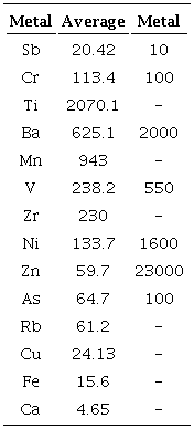 Table 2 shows the average concentration of the metals and metalloids obtained in the samples as well as the LMP established by the referred standard.