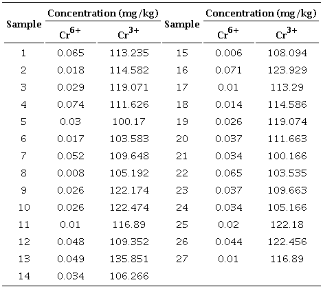 In soils, chromium is usually found in a Cr3+ form (Zayed & Terry, 2001), Cr6+ is present in aerated soils and, with the presence of organic matter, it is generally the most important reducing agent (Adriano, 2001), and it can be reduced to Cr3+. “Boleo Estrella” tailings dam is not properly a soil, however, it has dried up and consolidated over the years providing sustainment to different vegetation, as well as to insects and animals, which were observed during sampling. The results obtained in chromium determination in an oxidation status are consistent to those reported by various authors. It is relevant to mention that Cr3+ is not known to be a potentially toxic substance, while Cr6+ is highly toxic (Severiche & González, 2013).
