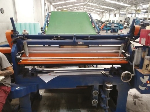 En el análisis del proceso se observó que una causa de la variación en el grosor del material se da por la falta de control en el material al momento de ingresar al área de corte en la que se realiza el corte del material por medio de una cuchilla giratoria. Con la finalidad de reducir la variación del grosor del material se diseñó un rodillo especial que sujeta el material al momento de ingresar al corte con la cuchilla, con el objetivo de estabilizar el material. En la Figura 3 se muestra el rodillo ya adaptado en la máquina de división.