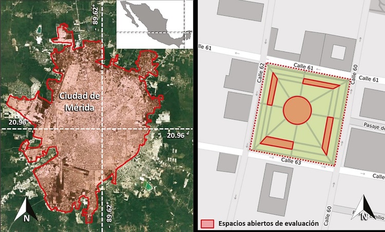En este caso, la población de estudio se enfocó en aquellas personas cuya estadía mínima en la ciudad fuera de 15 días, con el fin de garantizar el periodo mínimo de adaptación humana a las condiciones del ambiente. El trabajo de campo se desarrolló en los espacios exteriores de la Plaza Grande ubicada en el Centro de la ciudad de Mérida (Figura 1). A este estudio, en adelante, se le denominará MER Cálido-húmedo.