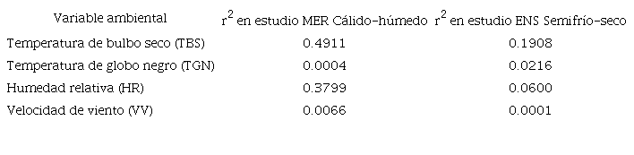 Estas diferencias se deben invariablemente a las condiciones climáticas que cada sitio presentó durante el periodo cálido de evaluación, así como a las diferentes acciones que cada sujeto en lo individual emprende para alcanzar la confortabilidad en su entorno inmediato.