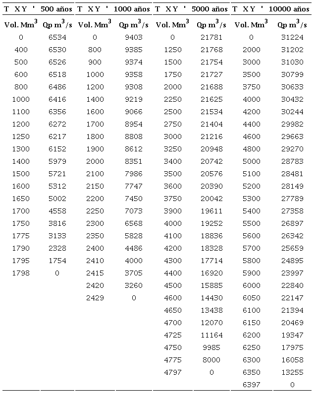 La aplicación numérica se realiza para los 52 gastos máximos y volúmenes de las crecientes de entrada a la Presa Venustiano Carranza (Don Martín), del estado de Coahuila, México.
