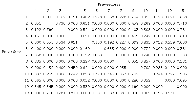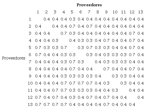 El método ELECTRE I se desarrolló en tres partes: la primera, una matriz de decisión, en la segunda una matriz de decisión normalizada y la tercera una matriz de decisión normalizada ponderada. Con base en la información de cada proveedor se desarrolló la Tabla 4.