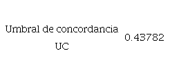 Por último, se obtiene umbral de discorcordancia siendo el promedio general (Tabla 15).