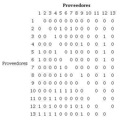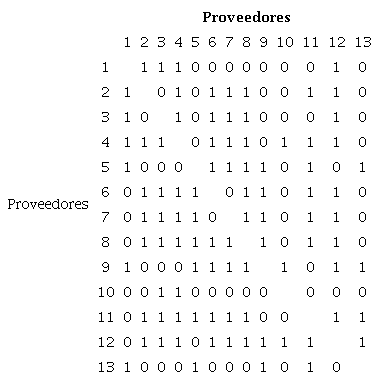 A partir de la matriz de dominancia agregada (Tabla 20) se obtiene la siguiente red, donde en el nivel uno los proveedores 2, 6, 8, 10, 11 y 13 no fueron superados por ningún otro proveedor. Para el nivel dos, los proveedores 1, 3, 5 y 7 fueron superados por los proveedores del nivel 1. Para el nivel tres los proveedores 4, 9 y 12 fueron superados por los proveedores del nivel 2. Finalmente se elige a los proveedores 1, 3, 5, y 7, su calidad no es mínima y con la revisión de pronóstico por cada 15 días, mejorará. Proveedores del nivel 3, son alternativas sobre clasificadas, en este caso los proveedores 4, 9 y 12, debido a que poseen una excelente calidad.