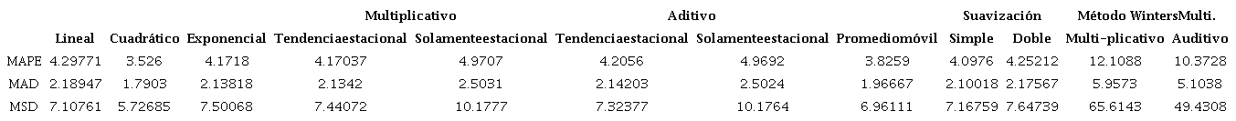 Para obtener el pronóstico de los tres meses correspondientes (Tabla 2), previsto a 15 días, los valores se obtuvieron aleatoriamente mediante la información de la PYME. A través de la ecuación (1) tendencia ajustada se obtiene el pronóstico.