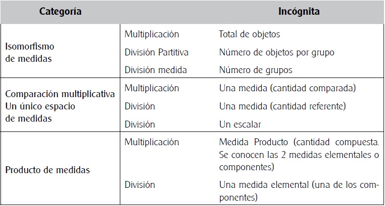 En las últimas décadas del siglo XX se llevaron a cabo varias investigaciones sobre resolución de problemas aritméticos verbales, y se generaron diferentes categorías semánticas para los problemas y categorías de las estrategias de resolución empleadas por los niños (Carpenter, Moser y Romberg, 1982; Castro, 2008; Greer, 1992; Nesher, 1992; Vergnaud, 1990; 1997). Estos estudios originaron diversas perspectivas y aportaron aproximaciones conceptuales para organizar los problemas aritméticos elementales. Vergnaud, introdujo la idea de campo conceptual como un conjunto de problemas y situaciones para cuyo tratamiento resulta necesario utilizar conceptos, procedimientos y representaciones de diferente tipo estrechamente interconectados (Vergnaud, 1983), con objeto de organizar las situaciones con estructura aditiva y multiplicativa, vistas como un conjunto de problemas que implican operaciones aditivas (adición, substracción, traslación), o multiplicativas (multiplicación, división, fracción, razón, similitud). En cuanto a las situaciones de estructura multiplicativa, estudios posteriores al de Vergnaud han planteado diferentes aproximaciones que intentan organizarlas (Greer, 1992; Nesher, 1992; Schmidt y Weiser, 1995).
