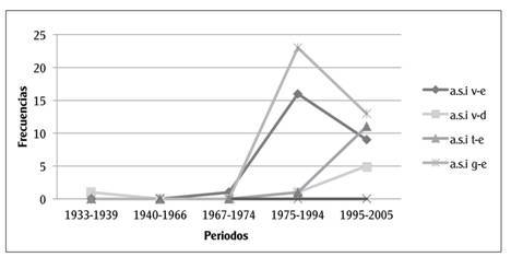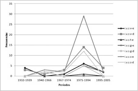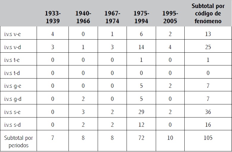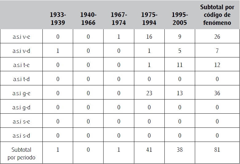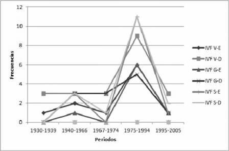 En el periodo 1975-1994, el fenómeno i.v.s supera en frecuencia al fenómeno a.s.i siendo la relación aproximada entre ellos 1:1,75.