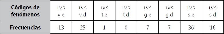 La Figura 2 resume la evolución a lo largo de los diferentes periodos educativos de los códigos de fenómeno i.v.s. Para hacer más cómoda la observación de esta figura hemos omitido la fila con todas sus entradas nulas en la Tabla 13.