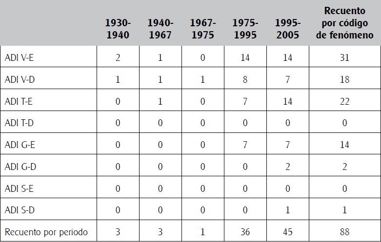 En el periodo 1975-1994, el fenómeno IVF supera en frecuencia al fenómeno ADI siendo la relación aproximada entre ellos 3:4.
