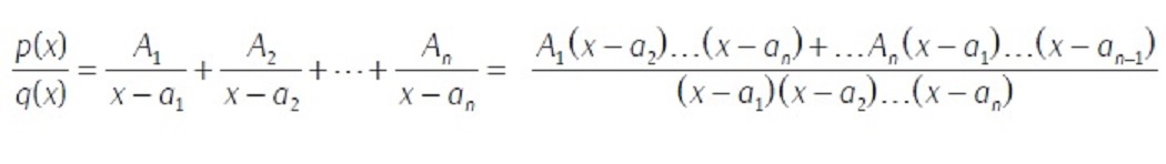 Esta fórmula para calcular los coeficientes Ai puede ser más ventajosa que resolver sistemas de ecuaciones lineales, en particular si q(x) es un polinomio de grado muy grande. […] Finalmente, téngase en cuenta que en la deducción de la fórmula se utilizó el que q (x) es un producto de factores lineales todos distintos, y, por lo tanto, esta fórmula no sirve para calcular los Ai de los casos que siguen a continuación.