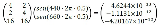 Se puede proponer a los estudiantes relacionar la configuración con la forma matricial de la transformación y mirar la mezcla como una transformación de las fuentes que matemáticamente tiene dominio R2 y codominio R3, dada por: