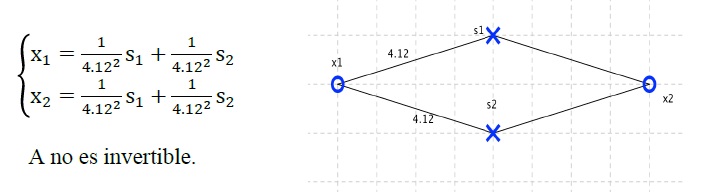 El discurso tecnológico puede enriquecerse analizando la dependencia lineal de las filas de A —y por tanto su carácter no invertible— con configuraciones en donde las fuentes y las observaciones sean simétricas, haciendo indistinguible la información que recibe una y otra fuente, como en la figura 6.