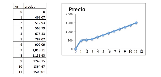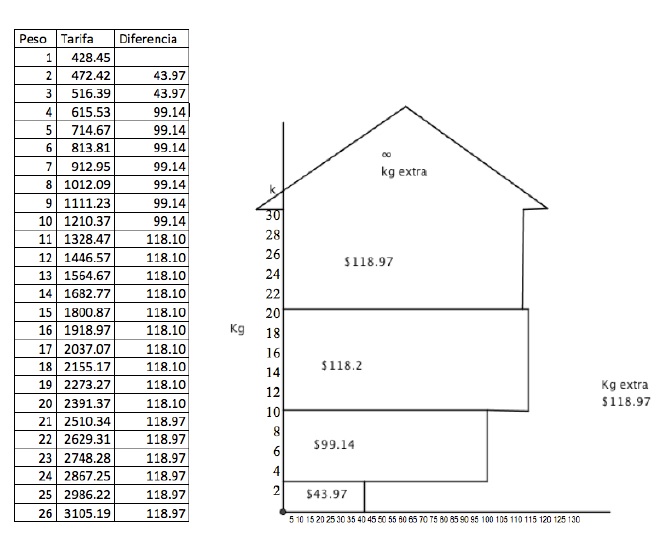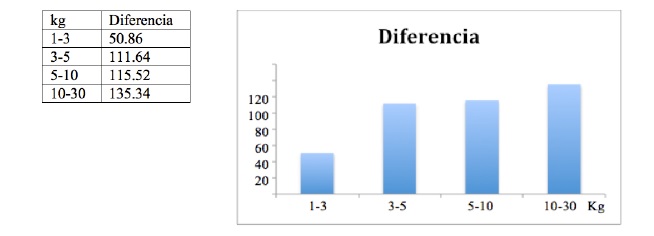 • ¿Es la misma diferencia de cobro que hay entre un paquete de 3kg y 4kg, y la que hay entre un paquete de 5kg y 6kg?