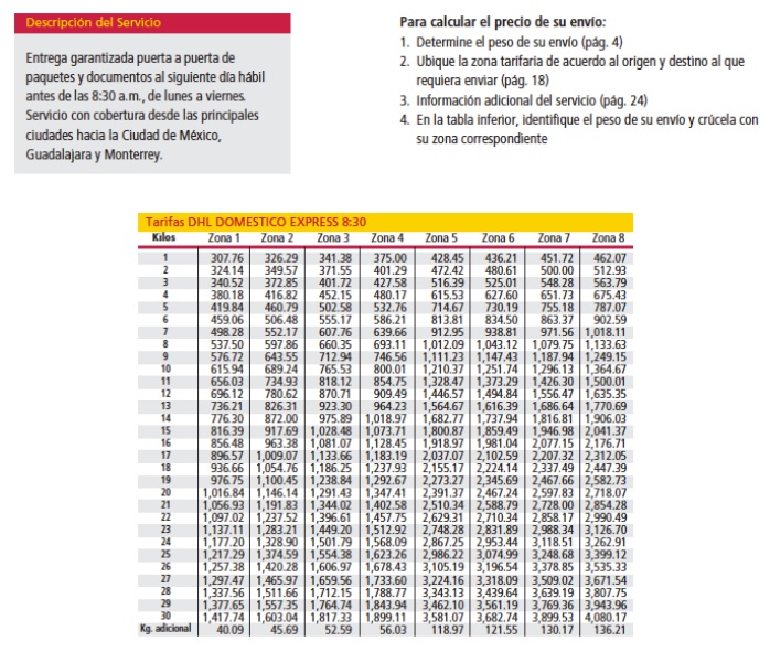 • ¿Cuánto me cobrará DHL por enviar un paquete de 2kg y 300 gramos?