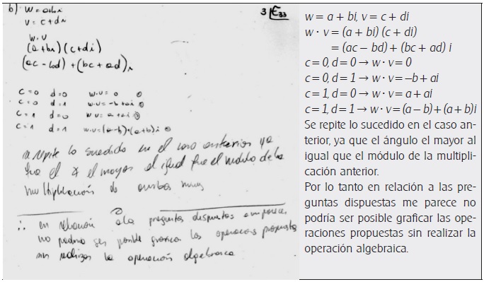 D. De un total de 34 estudiantes 13 utilizan la definición de número complejo como w = a + bi en el plano complejo, representándolo como vector. La figura 6 (mostrada anteriormente) correspondiente al estudiante E12 es un ejemplo de esto.