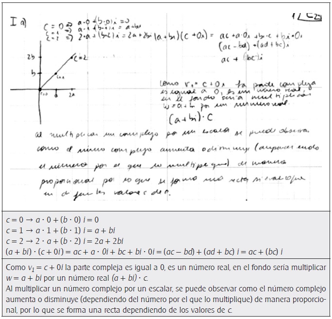 En general los estudiantes toman los números complejos (a + bi) y (c + 0i ), los operan y luego los relacionan con los vectores correspondientes, como se muestra posteriormente en la figura 2 correspondiente al E25.