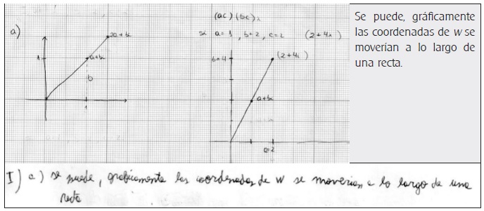 B. En cuanto a las conversiones, de los 34 estudiantes 15 trabajaron en la conversión I ® II, no se presentaron estudiantes que trabajaran en II ® III ni en I ® III. Finalmente 2 estudiantes trabajan en I ® II ® III. La mayoría de los estudiantes comienzan a efectuar la(s) conversión(es) desde el registro algebraico para luego llevar su resultado al registro gráfico, como se muestra en la siguiente figura del E12:
