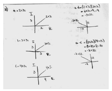 D. De un total de 34 estudiantes 22 utilizan la definición de número complejo como w = a + bi en el plano complejo, representándolo como vector. La siguiente figura correspondiente al estudiante E9 es un ejemplo de esto: