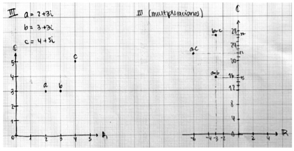 B1: “Un número complejo es un número que no pertenece al conjunto de los Reales. Y como se representa gráficamente tenemos pequeñas confusiones, porque creemos que es un punto pero también creemos que es un vector, estas son nuestras reflexiones de cómo se representa gráficamente ¿es un vector? ¿es un punto?”.