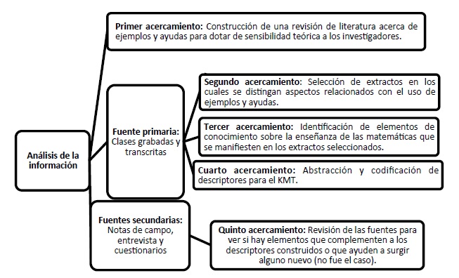 Posterior a la transcripción de las videograbaciones, hicimos el análisis a partir de cinco acercamientos para contrastar y confrontar la información analizada. Se sintetizan en la figura 2.