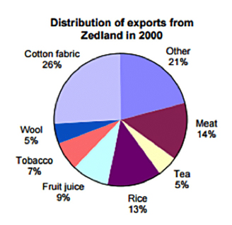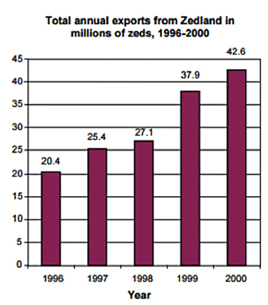 9. En relación al siguiente gráfico, ¿cuál es el valor del jugo de fruta exportado de Zedlandia en el año 2000?