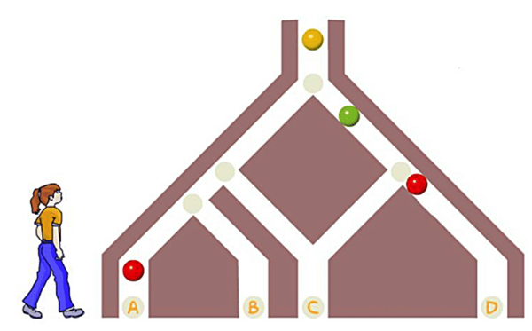 De acuerdo con la información anterior, ¿en cuál de los depósitos (A, B, C, D) caerán más bolitas? ¿Por qué?