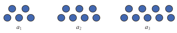 Enseguida se muestran las dos tareas reportadas en este trabajo. La primera corresponde a una de las presentadas en la fase de diagnóstico (Figura 1). Esta sucesión mostró al alumno los tres primeros términos y se requirió obtener a5, a10, a100, an . Cada término consistió en dos filas de puntos con la expresión 2n +3 como expresión algebraica asociada a la regla.