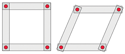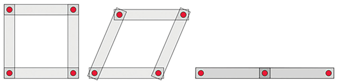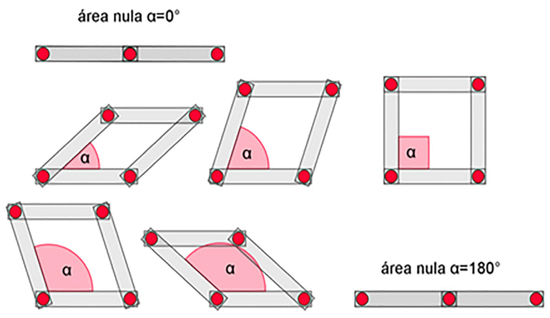 Al comenzar la clase se les presenta a los alumnos un cuadrado formado por cuatro tiras de cartón de igual longitud, unidos por broches mariposa. Se deforma, creando un cuadrilátero “parecido” a un cuadrado.