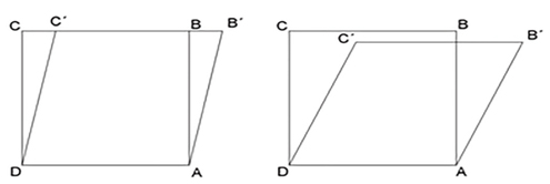 Se puede observar que, en la primera figura, en la que por compensación se puede deducir que los cuadriláteros ABCD y AB’C’D tienen igual área, la medida de la longitud del segmento DC es menor que la del segmento DC´. Consecuentemente, lo que muestra la segunda figura es que si los lados DC y DC’ son de igual medida, la altura del segundo cuadrilátero es menor al original y de ahí que las áreas ya no sean iguales.