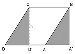 Las áreas de ABCD y A´BCD´ son iguales, y la de este último es igual al producto entre en lado y la altura.