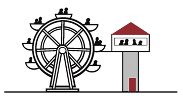 La rueda gigante que se muestra en la figura tiene un radio de 1 decámetro y tarda un minuto en dar una vuelta completa.