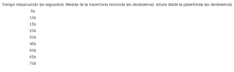 Bosqueja la gráfica que relaciona la medida de la trayectoria recorrida por un pasajero con la altura a la que se encuentra respecto a la plataforma.