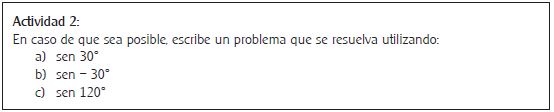 Mediante la planificación propuesta procuramos enriquecer la imagen conceptual de los estudiantes del concepto de seno. Con la primera actividad pretendemos que los estudiantes evoquen la imagen conceptual que tienen; posteriormente intentamos dejar en evidencia las limitaciones de dicha imagen, ya que no les permite realizar lo solicitado en la segunda actividad.