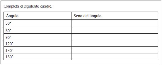 Construir la noción de función seno para ángulos entre 0° y 180°.