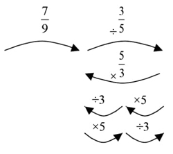 Una primera solución expresa la conservación de las relaciones fraccionarias y necesita recurrir a la multiplicación de una fracción por un número: