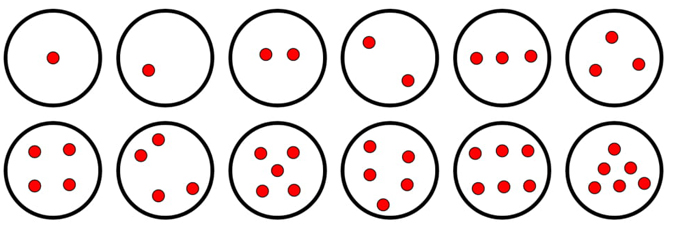 Primero se les mostró a los niños un plato con uno, dos o tres puntos. El tiempo en el que se le exhibió cada plato fue suficiente para que los niños vieran los puntos, pero no para que los contaran (dos o tres segundos).