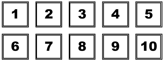 Para evaluar este aspecto, se usó un juego que llamamos “¿Qué Número Es?”. En él se usaron tarjetas (de 10 cm por 10 cm) con los números escritos del 1 al 10. En cada tarjeta se escribió un número (ver Figura 3).